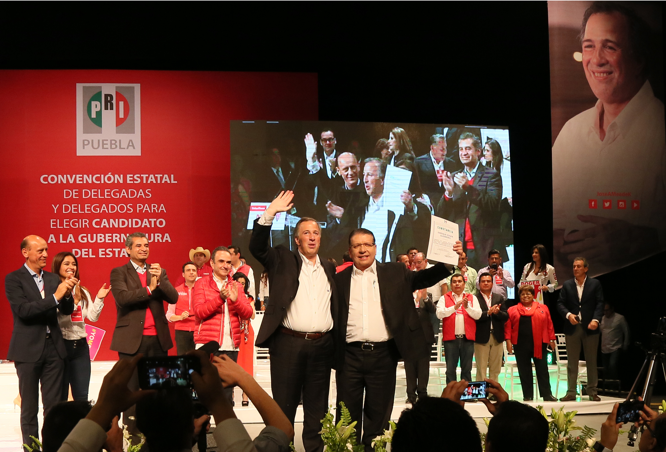 CIUDAD DE PUEBLA, PUEBLA, FEBRERO 2018. – Con el respaldo de José Antonio Meade Kuribreña, abanderado del PRI a la Presidencia de la República, Enrique Ochoa Reza, Presidente del CEN y miles de priistas poblanos; la Convención Estatal de Delegadas y Delegados eligió a Enrique Doger Guerrero como Candidato a Gobernador de Puebla para el proceso electoral del próximo 1 de julio.