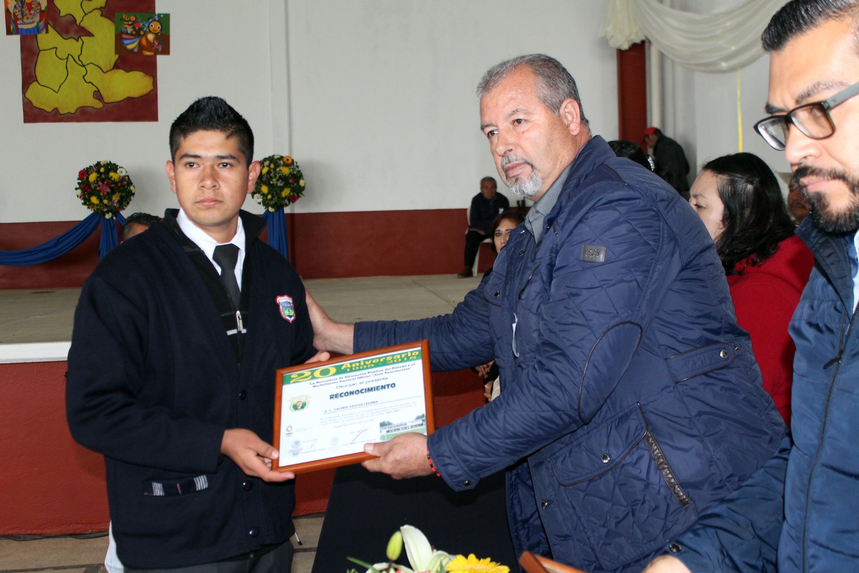 Reconocimiento para el profesor Trinidad Rubio Meléndez por 20 Años de mantener la calidad educativa en el bachillerato José Vasconcelos de Naupan.