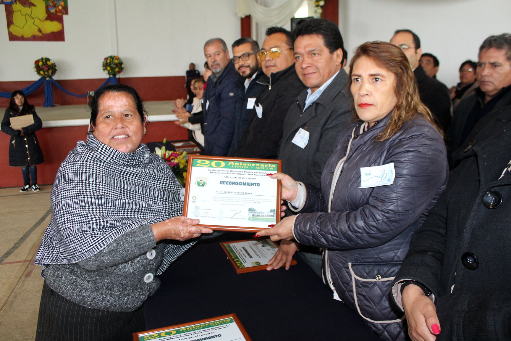 Recibieron un reconocimiento; los comités de padres de familia, expresidentes municipales, autoridades auxiliares, directores de bachilleratos hermanos de Xicotepec, para el Tecnológico de Huauchinango, de tele secundarias, regidores y uno más para el periódico El Imparcial de la Sierra Norte.