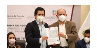 Lorenzo Rivera Nava entrega títulos de propiedad.