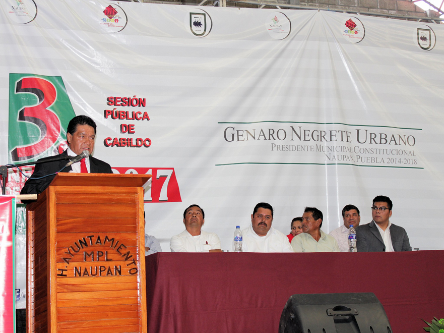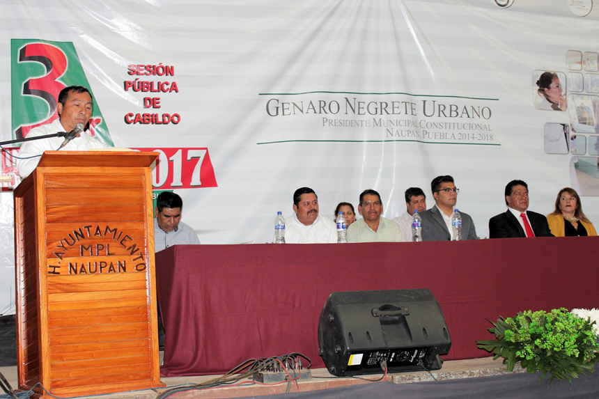 Naupan, Puebla. Febrero 2017.- En marco del Tercer Informe de Gobierno, el presidente Genaro Negrete Urbano destacó que el municipio ha tenido un crecimiento importante como nunca se había visto y que los recursos han sido mayores y que fueron aplicados en todas las comunidades del municipio.