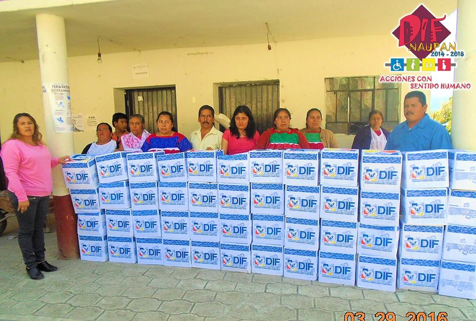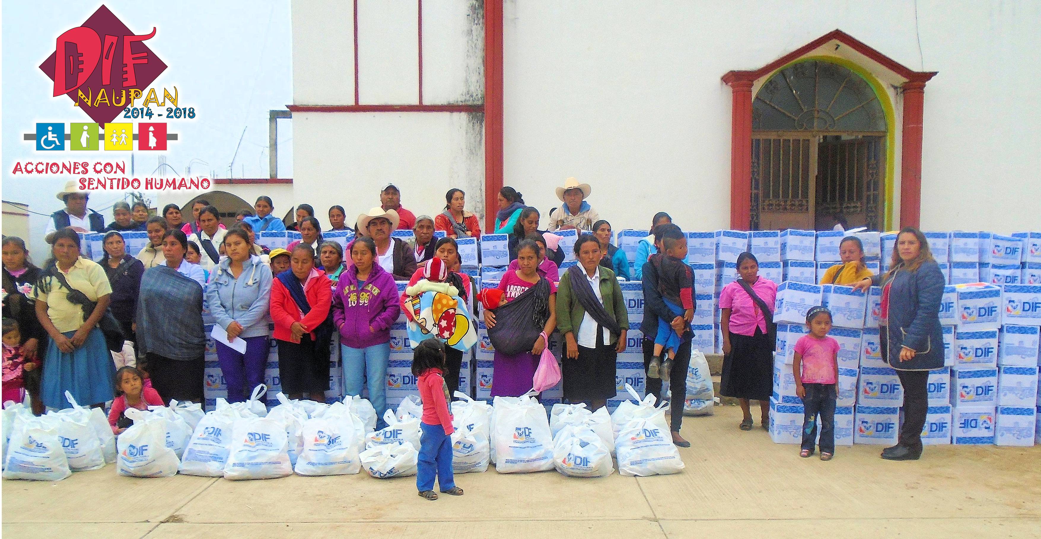 La Presidenta del Sistema DIF… Municipal de Naupan, Puebla C. Alicia Flores Rodríguez junto con su equipo de trabajo realizaron la primera entrega de APOYOS ALIMENATARIOS (despensas) del año 2016 a las familias más vulnerables de las diferentes localidades de Naupan.