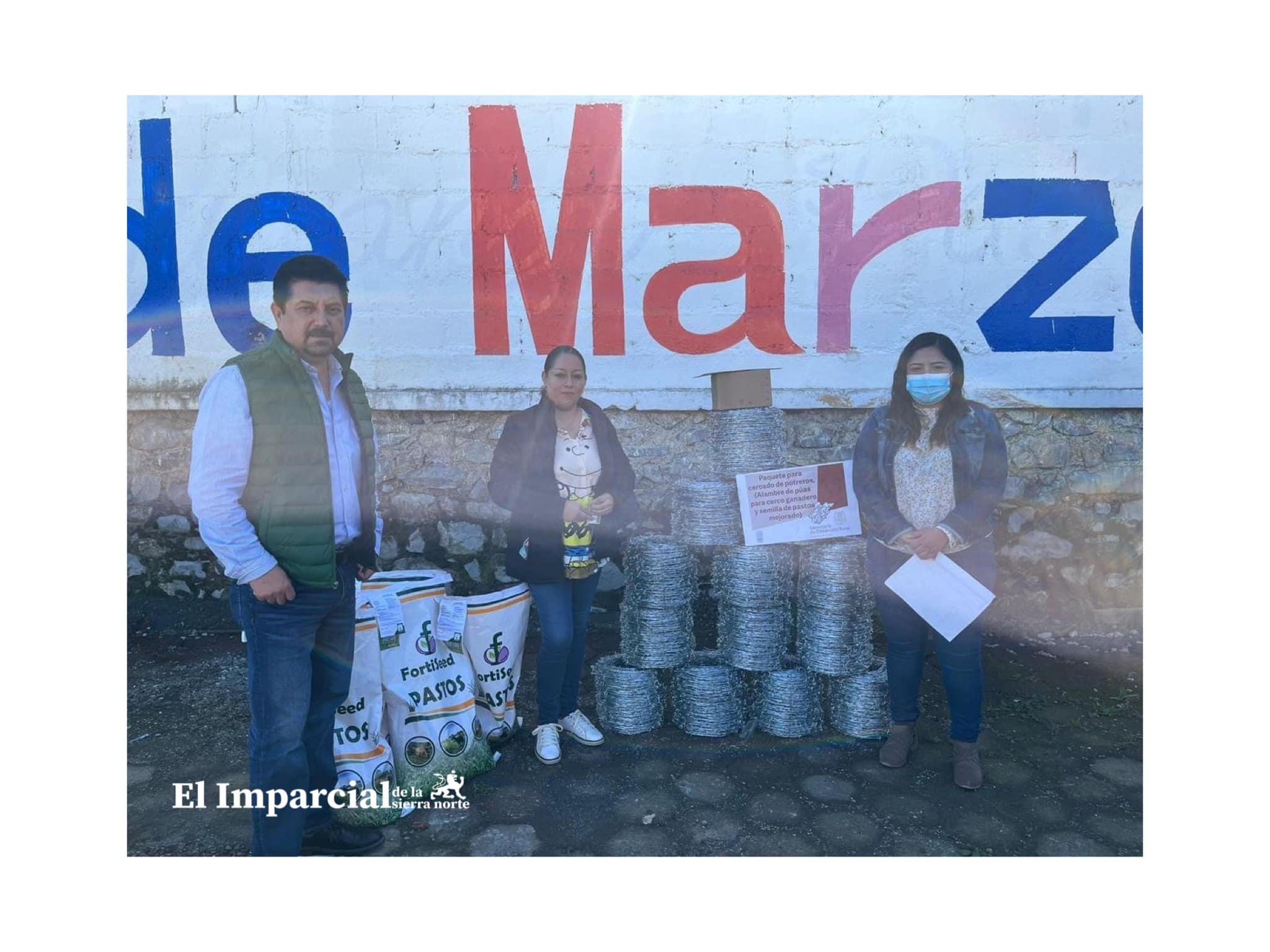 El secretario del ayuntamiento Alejandro Amador Sarmiento, con la delegada de la SDR Mayte Villalba Martínez realizaron la entrega de los apoyos para este sector ganadero.