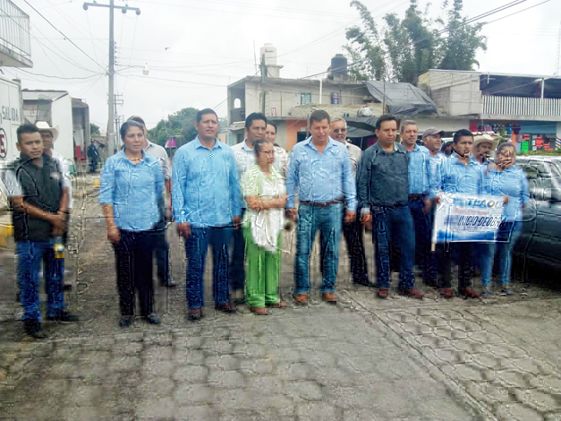 Xaltepuxtla, Junta auxiliar del municipio de Tlaola Puebla martes 4 de Junio 2019.-Ciudadanos de la localidad recibieron a las autoridades auxiliares que le dieron banderazo a la rehabilitación de calles de la junta auxiliar.