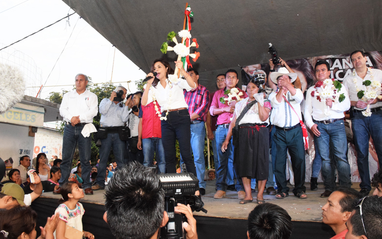 Blanca Alcalá no le tiene miedo a Moreno Valle, decirles que estoy de pie porque ustedes están de pie. Que estoy aquí, para defender sus derechos. Vamos a ganar el 5 de junio, No permitan que nadie les condicione su voto, que nadie les impida votar. Juntos vamos a ganar el 5 de junio.