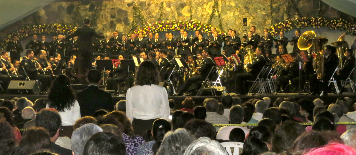 Juan Galindo,Puebla.Mayo 2017.- Un público nutrido, escuchó y se embelesó con la magistral actuación de la Sinfónica y del  Mariachi de la Secretaría de Marina, que interpretaron temas como el Huapango de Moncayo, Carmina Burana entre otras piezas, que el coro y la orquesta en armonía de voces y acordes,  creciendo y decreciendo, lograron llenar el ambiente con el sentimiento a flor de piel, de un público que de pie reconoció y felicitó por  cada una de las interpretaciones y piezas mexicanas que se presentaron.