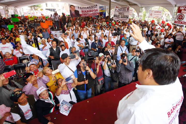 Ciudad de Puebla.Abril 2019.- Tras tres semanas de una campaña exitosa, donde ha escuchado y atendido las peticiones de miles de poblanos de todo el estado, el candidato de la Coalición Juntos Haremos Historia, Miguel Barbosa Huerta, se ha comprometido a dar soluciones concretas a los problemas más urgentes de la gente; al tiempo de reiterar su llamado a la reconciliación para lograr una mejor condición social.