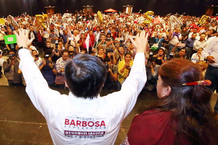 “Revisaremos la educación de sus hijos, los servicios de salud y vivienda; quiero ser un gobernador de todos los segmentos de la sociedad, clase alta, clase media, empresarios, trabajadores, campesinos, pero sobre todo de los débiles, ya es hora de que haya un gobierno que apoye al sector que se encuentra sin protección de la ley, sujetos a la corrupción y amenazados por la vida institucional”, destacó Miguel Barbosa.