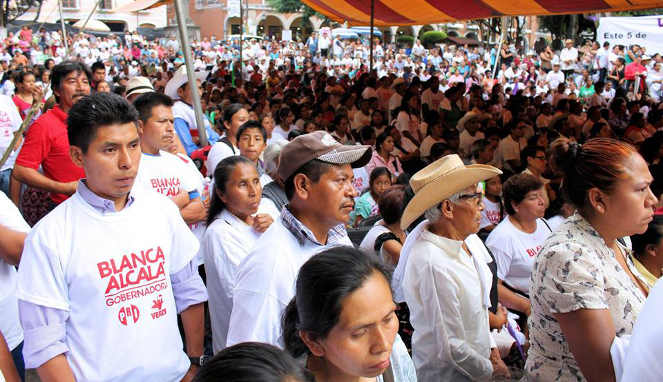Huauchinango, Puebla. Mayo 2016.- Blanca Alcalá no le tienen miedo a Rafael Moreno Valle, porque ustedes no le tienen miedo. Y aquí estoy de pie y de frente, viéndolos a los ojos. Que les quede claro, vamos a lograr una Puebla de libertades, que recupere los servicios. Vamos a ganar, porque gobernador no pone gobernador. El tamaño de su guerra sucia, es el tamaño de su miedo. Por eso vamos a ganar el 5 de Junio.